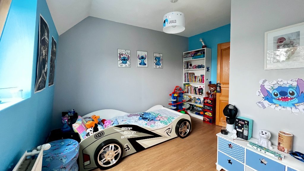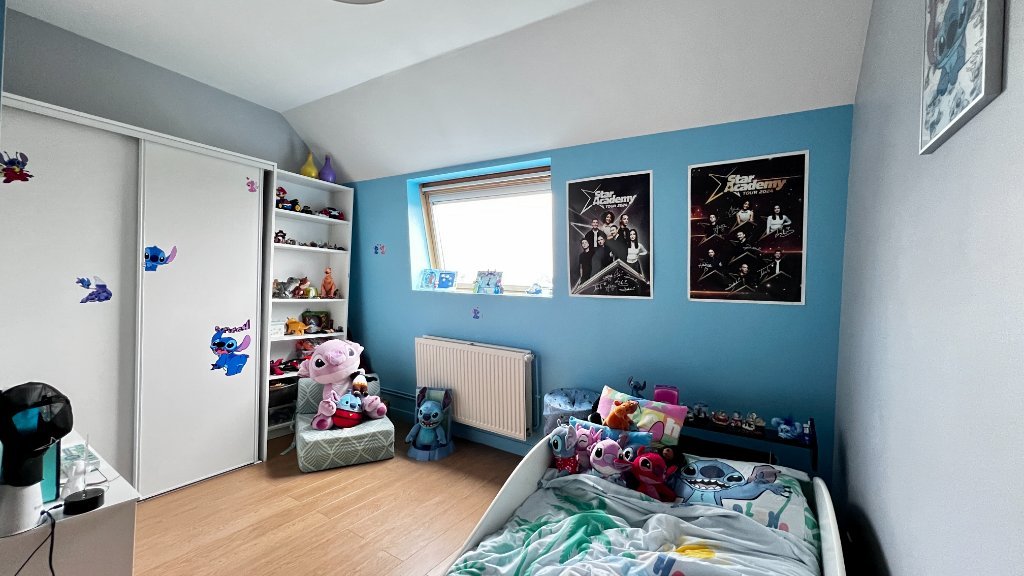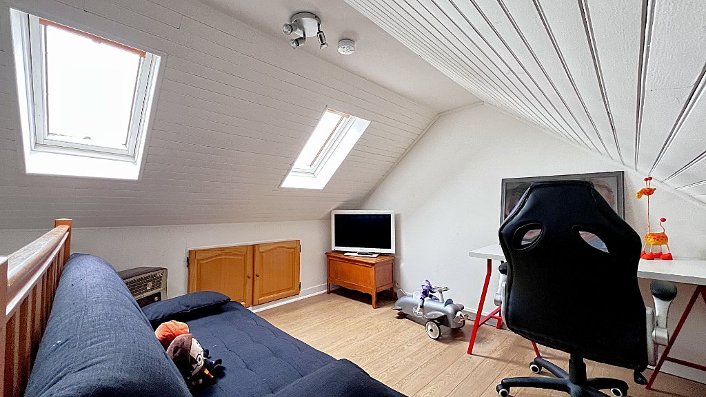 Au deuxième étage, un palier dessert deux chambres. Les combles aménagés au troisième étage vous laissent imaginer un espace bureau / salle de jeux.