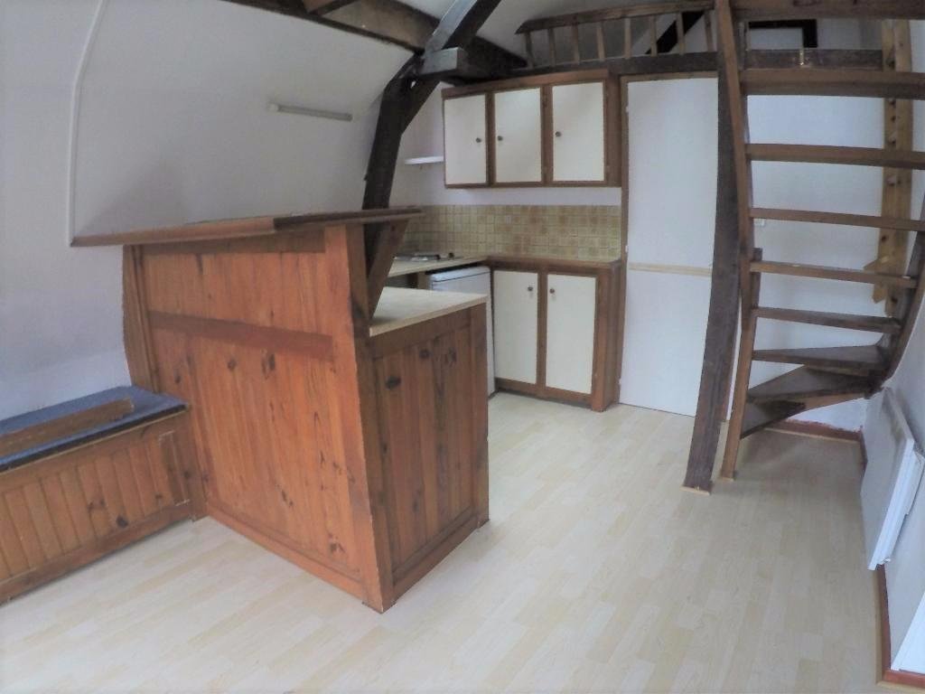 Situé au 3ème étage sans ascenseur, il se compose d'une pièce de vie, d'une cuisine aménagée avec branchement machine à laver, d'un espace nuit en mezzanine avec rangements, d'un espace de stockage en mezzanine également, et d'une salle de bains avec WC séparés.